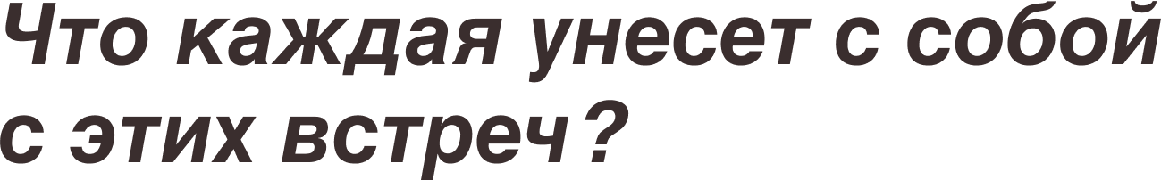 к сожалению, никак не встречаются друг с другом, кроме праздников. Мы обсуждаем интересные темы, крутые мысли на кухне, но дальше это никуда не уходит, хотя мы глубоко убеждены, что это может помочь многим женщинам.